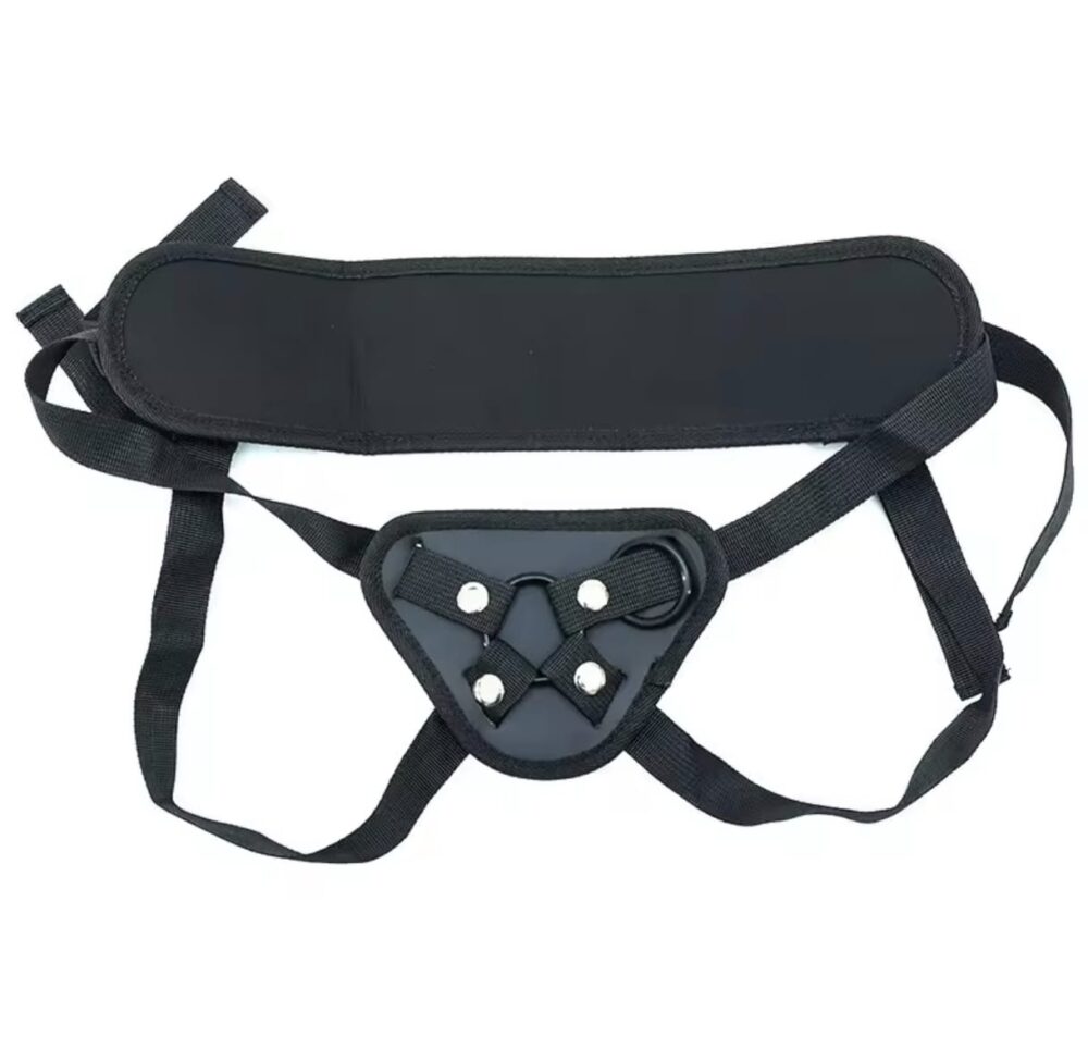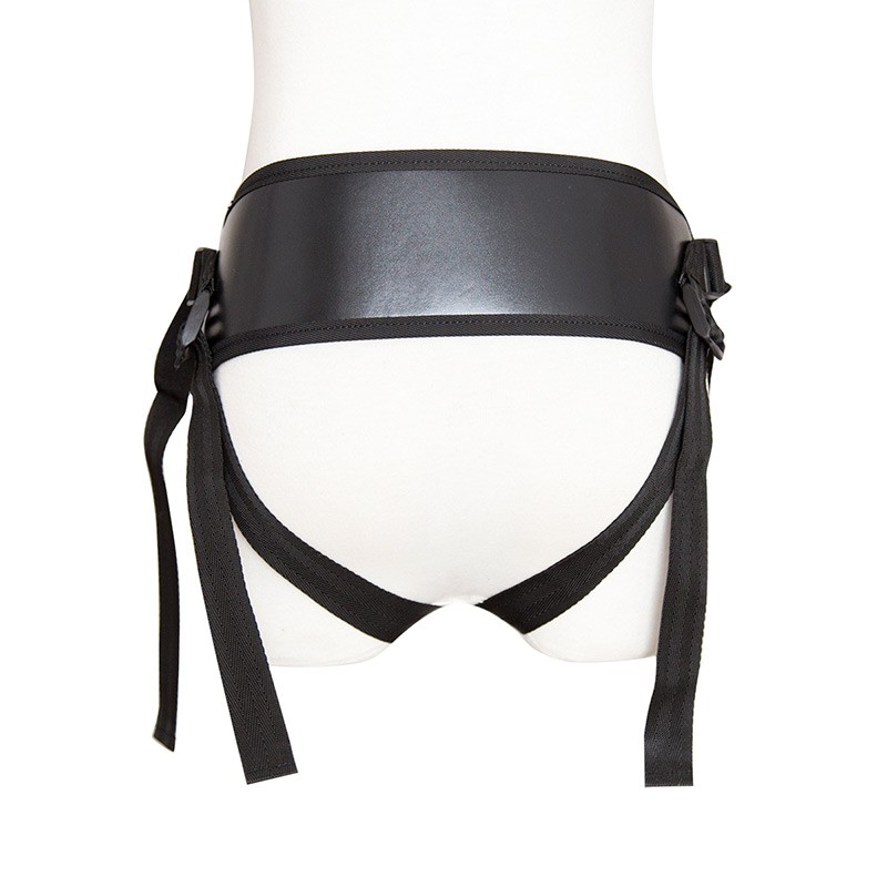 Cómodo arnés con soporte lumbar, fabricado en cuero sintético. Sus tiras son lo suficientemente anchas como para que no te moleste el roce y están provistas de un sistema de sujeción a medida. La parte central lleva un espacio para colocar el anillo de su preferencia y sujetar el dildo (no incluido) mediante broches de seguridad que impiden que se desplace de lugar mientras lo utilizas.