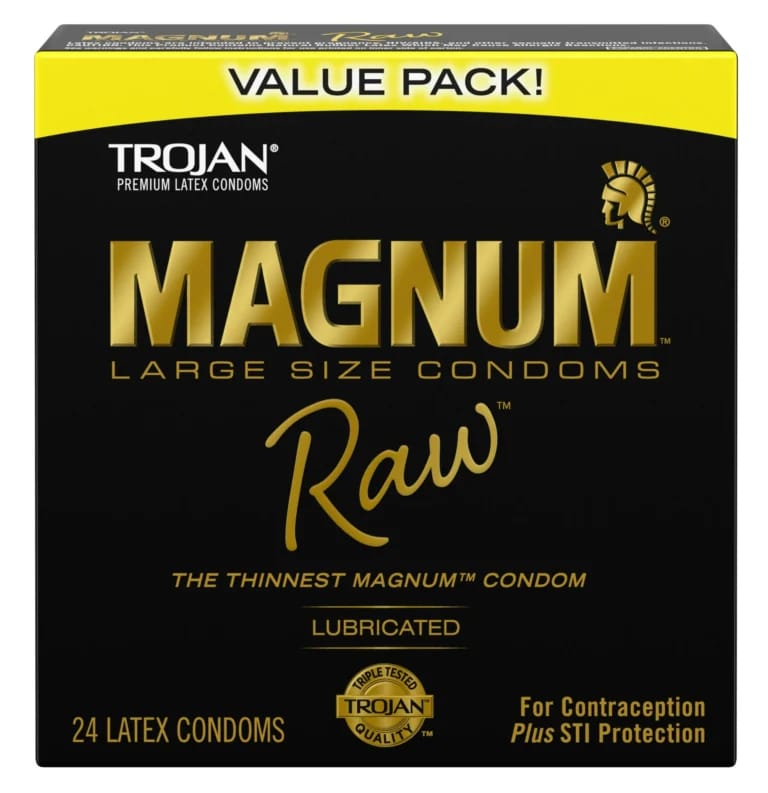 Magnum Raw es el condon más delgado de la marca Trojan, para una mayor sensibilidad y comodidad.